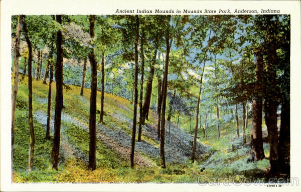 Front: Ancient Indian Mounds in Mounds State Park, Anderson, Indiana 90901-N Back: YORK NEWS COMPANY. ANDERSON, INDIANA