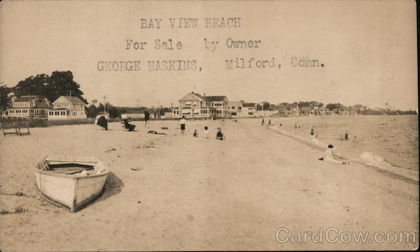 Front: BAY VIEW BEACH For Sale by Owner GEOFGE HASKINS, Milford, Conn. Back: Shore Front Bay View Beach For Sale by Owner GEORGE HASKINS, Milford, Conn.