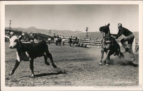 Front: M 28 Annual Missoula daycee Stampede Robt.M.Catlin tho Back: -- Kodak PHOTO POST GAR D PLAC Paper