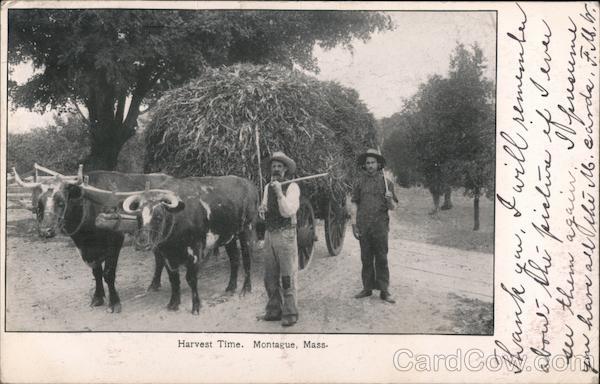 Front: Harvest Time. Montague, Mass. لہ Thank I will remember about the picture if I ever see them again presume you have all the Meárda, FMh. Back: CONTACTA ELNOW 1206 FRANKLIN 1790 JUL 23 5 PM 1906 es Mica Tanny 6. dewall Wilton. N.H.