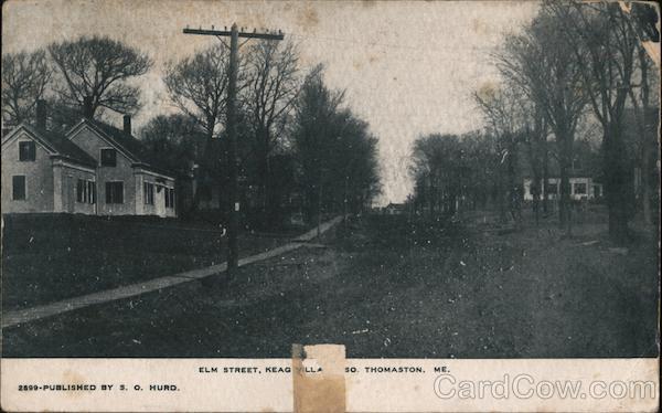 Front: ELM STREET, KEAG VILLA so. THOMASTON, ME. 2899-PUBLISHED BY S. O. HURD. Back: N. E, PAPER & STATIONERY CO, MERS. AYER, MASS. 25