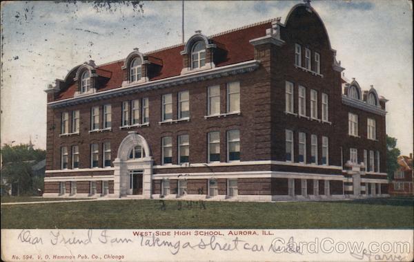 Front: HE WEST SIDE HIGH SCHOOL, AURORA, ILL. Klian Friend I am a Harver No. 594. V. 0. Hammon Pub. Co., Chicago Back: PARA 06:0 INITINVHA SIT 3-30P 19 08 ILL SOKOLINA Miss Charlotte Gemandi 309 sto 1.176 St. Joe Mo