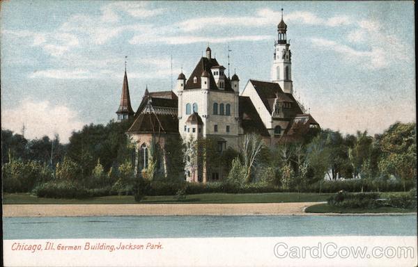 Front: Chicago, Ill., German Building, Jackson Park. Back: One Cent for United States, and Island Possessions, Cuba, Canada and THE HUGH C.LEIGHTON CO., MANUFACTURERS, PORTLAND, ME., U.S.A
