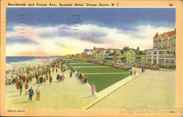 Boardwalk and Ocean Ave.. Seaside Hotel, Ocean Grove, N. J.