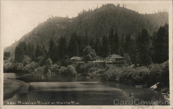 Front: STREEES ENEL -m°clearie. 5801. Russian River at monte Rio. Back: AB PMC- AEO. M STAMP M ----AEO---- PMC-- Photo by WM, McCLEARIE, VACATION, CAL the first cottage at the regtis is when Bechers lundi 8. Sorona