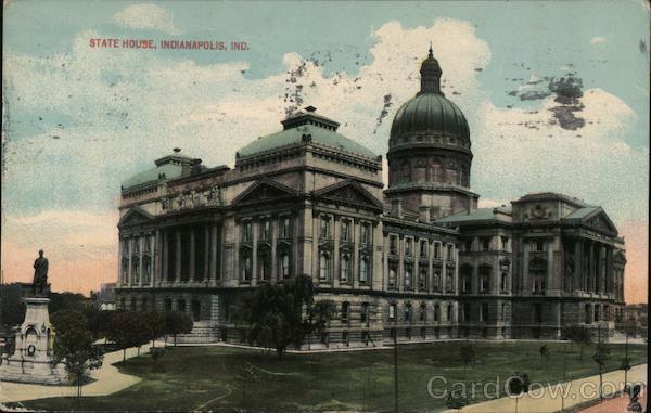 Front: STATE HOUSE, INDIANAPOLIS, IND. Back: IONI ANA ROSE 17 10 a DA 1914 SIDE IS FOR HE ADDRESS IND is. Published by The Indiana News Company, Indianapolis. Ind. I day Iffy Bu Just here for Blanche Ward fine tine uswig jent my Just have Abas ose