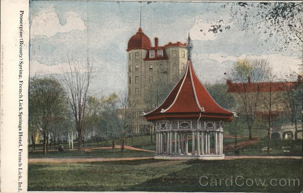 Front: Proserpine (Beauty) Spring, French Lick Springs Hotel, French Lick, Ind. Back: THIS SPACE MAY BE USED FOR COMMUNICATION. • FOREIGN • 21 PUBLISHED BY HOTEL PRESS, FRENCH LICK, INDIANA.