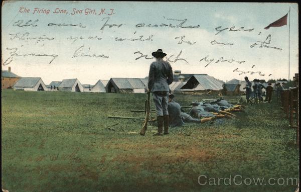 Front: The Firing Line, Sea Girt, N. J. Back: ROM N. LEIPZIG DRESDEN BERLIN POSD CARE EP 8 30 PM OF 1909 .. D 8194. Published by The Union News Company, New York. She devis Frootes, slao, Borracks, Barratto Missouré,