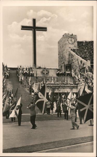16 75. DEUTSCHER KATHOLIKENTAG IN BERLIN Aufzug der Fahnen zur Pontifikalmesse im Olympia-Stadion (Nr. 4) Echte Photographie Morus-Verlag. Foto Wagner, Berlin
