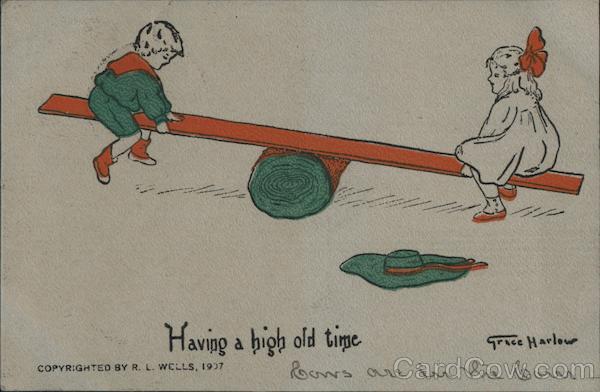 Front: Having a high old time Trce Harlow Roonrs ws are iu he lou COPYR:GHTED BY R. L. WELLS, I907 Back: MASS NREIEN 10 EDSTA" UE CONTACTE Thats space may be used for correspondence FRANKLIN 06 1790 1907 croiss Varnie serall Wirkan Dr.H.