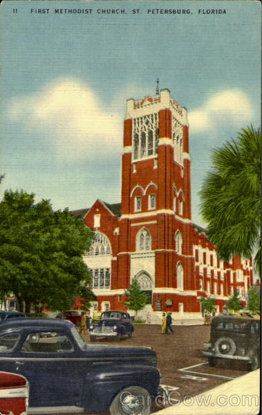 Front: 11 FIRST METHODIST CHURCH. ST. PETERSBURG, FLORIDA Back: E-8327 Distributed by Hartman Litho Sales Company, Largo, Florida Made by Eastern Photo Litho Company, Lowell, Massachusetts