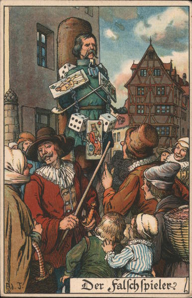 Front: (田X王X Rd. J. Der falfchſpieler2 Back: Lith. & Druck von E.Nister, Nürnberg. Poſtkarte. in Wohnung UN