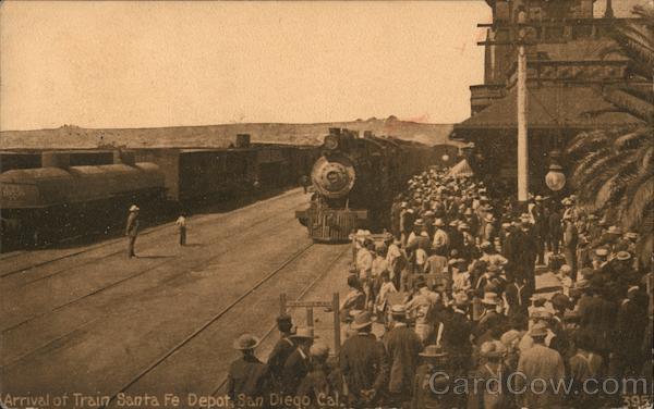 Arrival of Train Santa Fe Depot, San Diego Cal.
