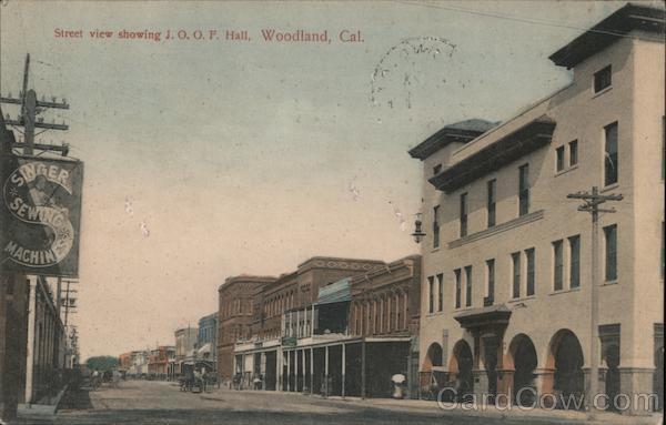 Street view showing J. O. O. F. Hall, Woodland, Cal.