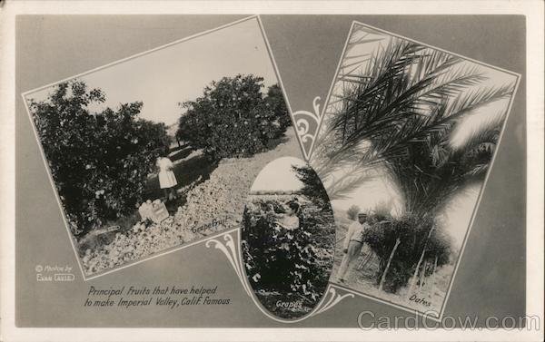 Front: GrapeFrujt ©Photos by EVAN AVIS Principal Fruits that have helped to make Imperial Valley, Calif Famous Dates Grapes Back: 8- A Azo 4 A 2