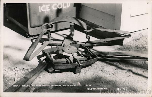 Front: ICE COLD BEAR TRAPS AT RIM ROCK RANCH, OLD STATION, CALIF. EASTMAN'S STUDIO 8-7919 Back: 10- DEVOLITE PEDRESS