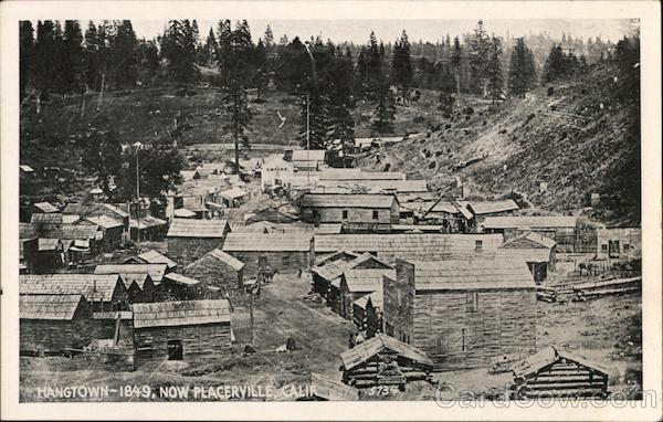 Front: ENFIRE HANGTOWN-1849, NOW PLACERVILLE, CALIR 734 Back: PACIFIC NOVELTY CO. SAN FRANCISCO GLOS ANGELES 5-