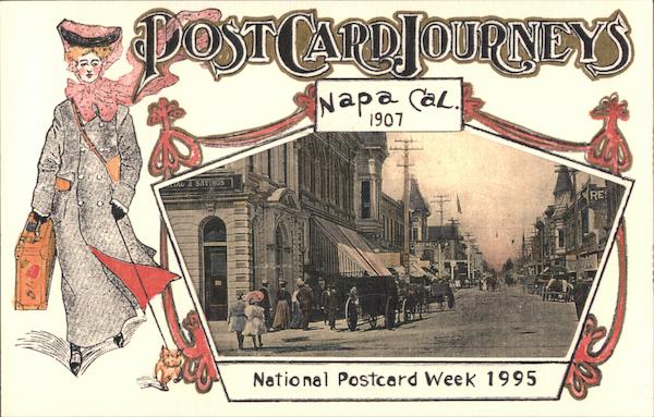 Front: DOST CAPDJOURINEYS 1907 IAL & SAVINGS RE GEMBLY National Postcard Week 1995 Back: 7 POSTCARD 3. I buy postcard collections! CAROL BROCKFIELD BOX 7115 NAPA CA 94558