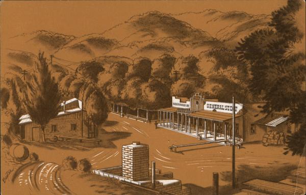 A 130 acre camping resort with Tent, Camper and Trailer spaces. Complete Western Town includes: General Store, Restaurant, Old West Saloon with Antique Bar, Museum, Trading Post, etc. - Fish, Swim, hike, camp or just plain relax in this bit of the Old West. Open all year. From the Darlene Thorne Collection |