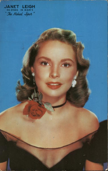 Front: JANET LEIGH co-STARS IN MGM'S The Nahed Spur" Back: No. 3 6- JANET LEIGH co-stars in MGM'S "The Naked Spur“ Dextone Made Direct from Kodachrome and Ansco Color By Dexter Press, Pearl River, N. Y. BE USED MAILING OR SWAPPING 63830