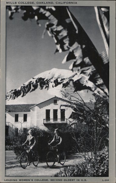 Front: MILLS COLLEGE, OAKLAND, CALIFORNIA LEADING WOMEN'S COLLEGE. SECOND OLDEST IN U.S. L-244 Back: VIEW CLEAR MFD. BY WAYNEPAPER BOX & PRTG. CORP., FORT WAYNE, IND.