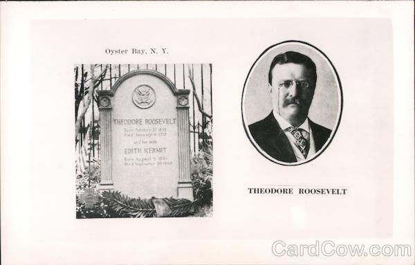 Front: Oyster Bay, N. Y. THEODORE ROOSEVELT Jorn Odober 27 1838 Died January 1217 and hs sole EDITH KERMIT Sorn Augusl s 1861 Ded September 30 1948 THEODORE ROOSEVELT Back: Brand 15 p-Kodak- STAM Papered