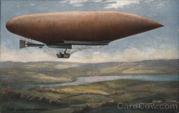 The Lebaudy Airship is one of the many developments in aerial navigation which is the invention of a Frenchman. It was constructed by M. Henry Julliot and is the property of the French army, being attached to the First Regiment of Engineers. It is fitted with a Mercedes Motor From the Darlene Thorne Collection |