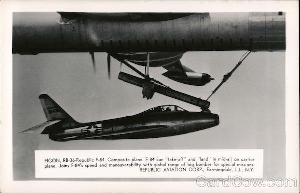 FICON, RB-36-Republic F-84. Composite plane. F-84 can "take-off" and "land" in mid-air on carrier