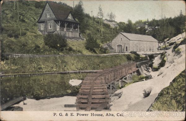 Front: P. G. & E. Power House, Alta, Cal. Back: CAL E. C. Kropp to., Milwaukee. THIS SPACE MAY BE USED FOR WRITING Please (15. Puanukumubaycah Pleases bal agair Hoca Weldud Austin Navzvod, ella ecel. 2x72 Fulton New Yor AN