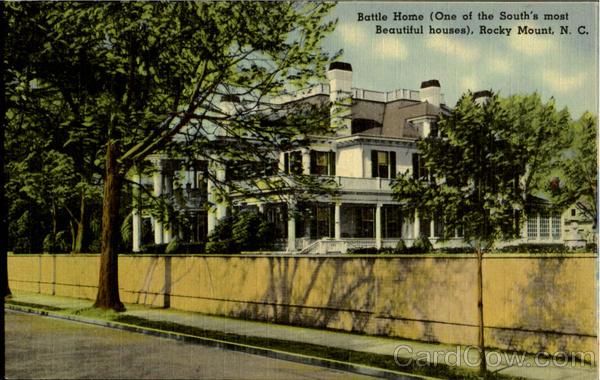 Front: Battle Home (One of the South's most Beautiful houses), Rocky Mount, N. C. Back: MADE IN U, S. A 'TICHNOR QUALITY VIEWS" REG. U.S. PAT. OFF. MADE ONLY BY TICHNOR BROS., INC., BOSTON, MASS 73508 PUB. BY CALVERT NEWS CO.. BALTIMORE, MD.
