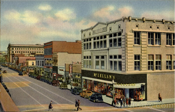 Front: RUSEAMILD BROS MLELLAN'S Back: A-28 CENTRAL AVENUE FROM FOURTH STREET, ALBUQUERQUE, NEW MEXICO This corner is the "heart of the city" where the two main thoroughfares cross and the center of the business district. 9A-H109