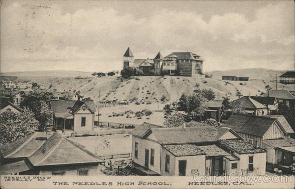 Front: EEDLES DRUG S CO. THE NEEDLE S HIGH SCHOOL, NEEDLES, C AL, Back: U.SOPO AN fa NE STERK MESSAGE ON THIS SIDE. се OCT 6 30 PM Movida Doggett Santa Rosa map, Love from weather This pirm writing details an hoihin city City clerk,