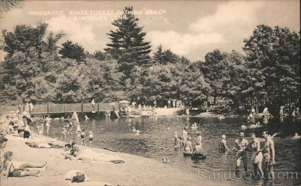 Front: MASSACOE STATE FORERT BATHING BEACH SIMSBURY ONN. Back: Published by THE COLLOTYPE Co., Elizabeth, N. J. and N. Y.