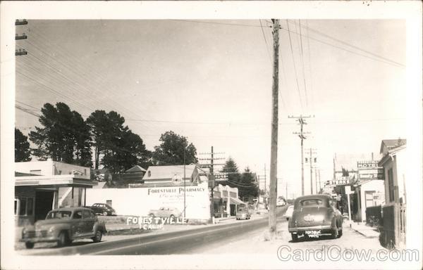 Front: TILL LOVENS UGS Deauly Shop THD'S STEAKS FORESTVLLE PHARMACY Preseriptns, FOREST BEAR PHOTO FORES TVILLE CALIF Hes Back: FOREST VILLE; CAL PHOTO ST. CAND Kodak- Paper- Зо-