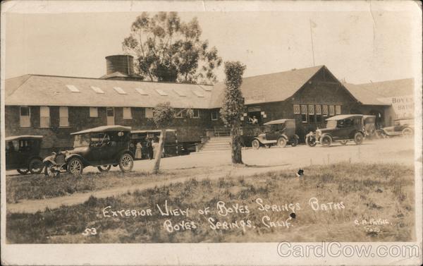 Front: INGS BATH HOUSE SHINING ΒΟΥ BATH ExrERiOR ViEw ExTERiOR WIEof BOYES SPRINGS BATAS 53 BoYes SERINGS, Saif. Back: A A z 0 4 HERE o A 2 O 500
