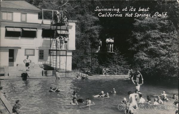 Front: Swimming at its best California Hot Springs Calif. POOL CLOSED SUNDOWN FRIDAY UNTIL SUNDOWN SATURDAY TMO TRONS SPPARATUS R OWN RISK Back: PST CAR 150