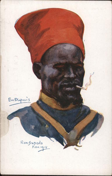 Front: Em Dupinos CON BO Parehendaele Nov.1914) Gevalerie iudicane 11 Back: -PARIS- COLOR CARTE POST A LE 152 Quai de Jem mapes Visé Paris. No 11. Nos Alliés
