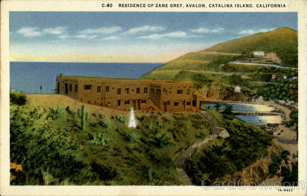 Front: C.40 RESIDENCE OF ZANE GREY, AVALON, CATALINA ISLAND, CALIFORNIA 1A-H425 Back: WESTERN PUBLISHING & NOVELTY CO., LOS ANGELES, CALIF.