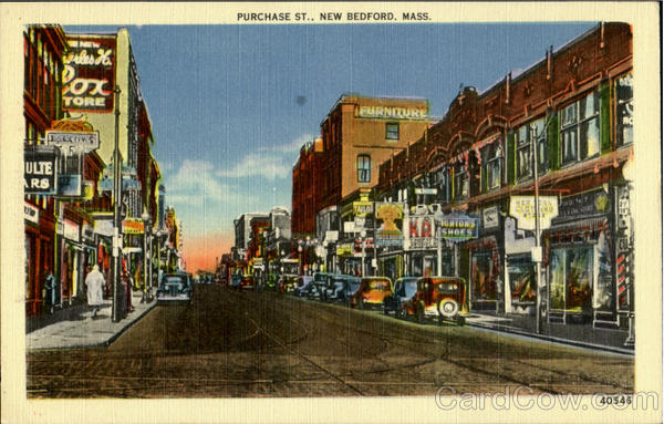 Front: PURCHASE ST., NEW BEDFORD, MASS. INE TORE IEURNCOURE ULTE RS IORTONS SHOES 40546 Back: Papers (Stationary News Magazines THIS SPACE FOR WRITING