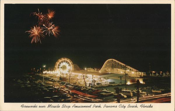 PLACE STAMP HERE 6DK-177 POST CARD FIREWORKS OVER MIRACLE STRIP AMUSEMENT PARK PANAMA CITY BEACH, FLORIDA PC.82-COOPER'S NEWS AGENCY, PANAMA CITY, FLA. CURTEICHCOLORR 3-D NATU RAL COLOR REPRODU CTION (REG. U. S. A. PAT. OFF.)