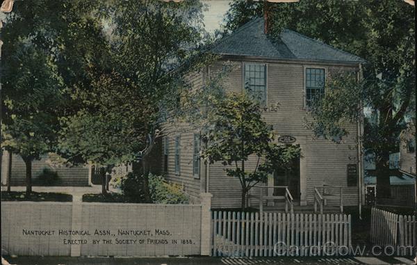 Front: CTED Y 183K NANTUCKET HISTORICAL ASSN., NANTUCKET, MASS. ERECTED BY THE SOCIETY OF FRIENDS IN 1838. Back: BROTHERS HONHOL COAST INC TO FOR CORRESPONDENCE ONLY COAST BOSTON, MASS ANGELES.CA LOS us