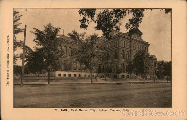 Front: No. 1519. East Denver High School, Denver, Colo. The Thayer Publishing Co., Denver. Back: THIS SPACE CAN BE USED FOR A WRITTEN MESSAGE, USING ONE-CENT STAMP
