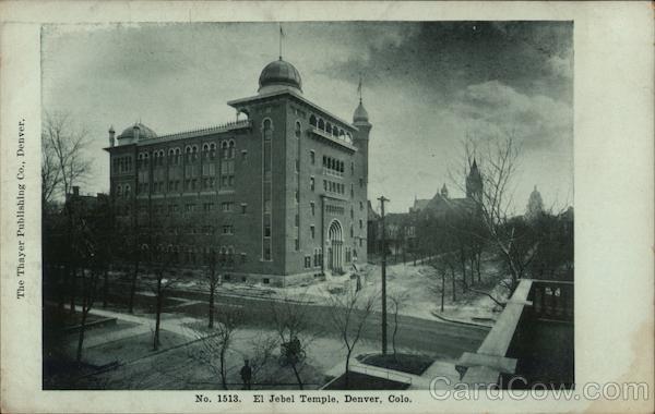Front: m 月月 No. 1513. El Jebel Temple, Denver, Colo. The Thayer Publishing Co., Denver. Back: 1908 THIS SPACE CAN BE USED FOR A WRITTEN MESSAGE, USING ONE-CENT STAMP
