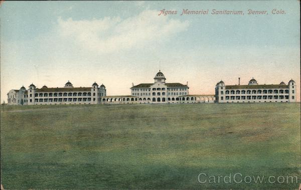 Front: Agnes Memorial Sanitarium, Denver, Colo. Back: zoo zza N. LEIPZIG DRESDEN BERLIN United States and Island Possession, Cuba, Canada and For all other Countries D 8702 Published by The Colorado News Company, Denver, Colo.