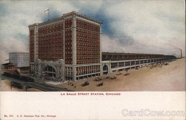 Front: 1Tశ పింయ్ FEE בניבמנב םבבב AAAAAAA LEE E EEE LA SALLE STREET STATION, CHICAGO No. 181. V. 0. Hammon Pub. Co., Chicago Back: SVOR HAMMON [PUBLISHING OG CHICAGO MARS