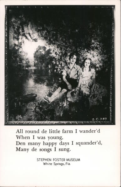 Front: 2. C- 3 89 All round de little farm I wander'd When I was young, Den many happy days I squander'd, Many de songs I sung. STEPHEN FOSTER MUSEUM White Springs, Fla. Back: Kodak L Paper