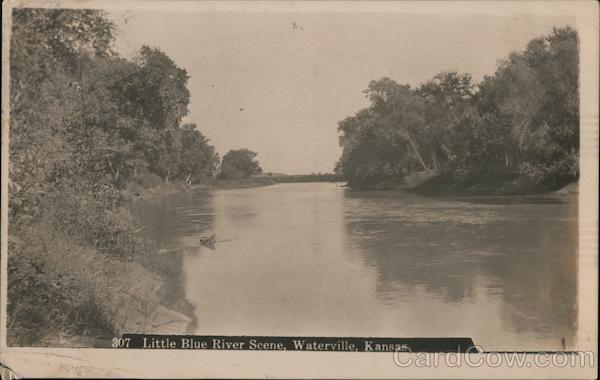 Front: 307 Little Blue River Scene, Waterville, Kansas Back: ded OS well. Stow do you 1. port card over about a Mfgd. by M. L. Zercher Book and Sta. Co., Topeka, Kan. Post Cayo AA Waterville Miso Klemena Park КА Pu! وان | 3 PM Nausas V.S.POSTAC.