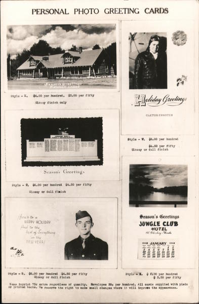 Name imprint 75¢ extra regardless of quanity. Envelopes 504 per hundred. All cards supplied with plain