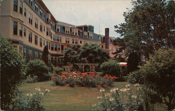 Beautiful Garden of the Lookout Hotel PLACE STAMP OGUNQUIT, MAINE HERE MADE IN U. S. A. K-2883 POST CARD Lusterchrome REG. U.S. PAT. OFF. MADE ONLY BY TICHNOR BROS., INC., BOS TON 15, MASS.