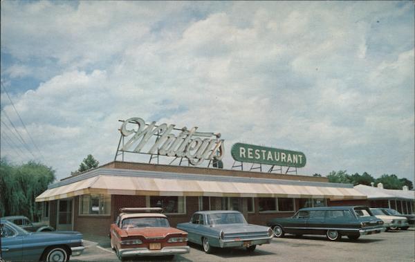 Whitey's Restaurant 12,074A 4001 Market St. PLACE Wilmington, Nor th Carolina STAMP HERE Post Card Glo-Var Finish By AURORA POSTCARD COMPANY - Aurora, Missouri C. Hettesheimer, 905 Oaklawn Dr., Thomasville, N. C.